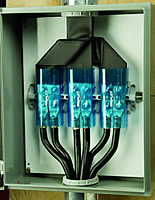 - Tinned copper block allows for copper or aluminum conductor connections